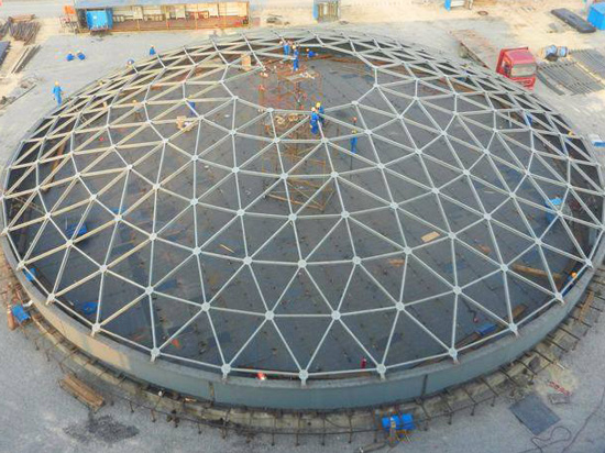 與平板網架相比,網殼的受力性能好,剛度大,自重小,用鋼量省,是適用于中、大跨度建筑屋蓋的一種較好的結構型式。 網殼結構常見型式有圓柱面網殼、圓球網殼和雙曲拋物面網殼。